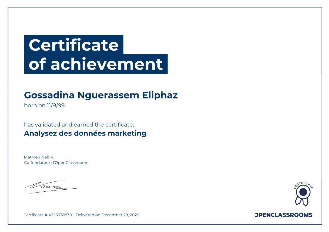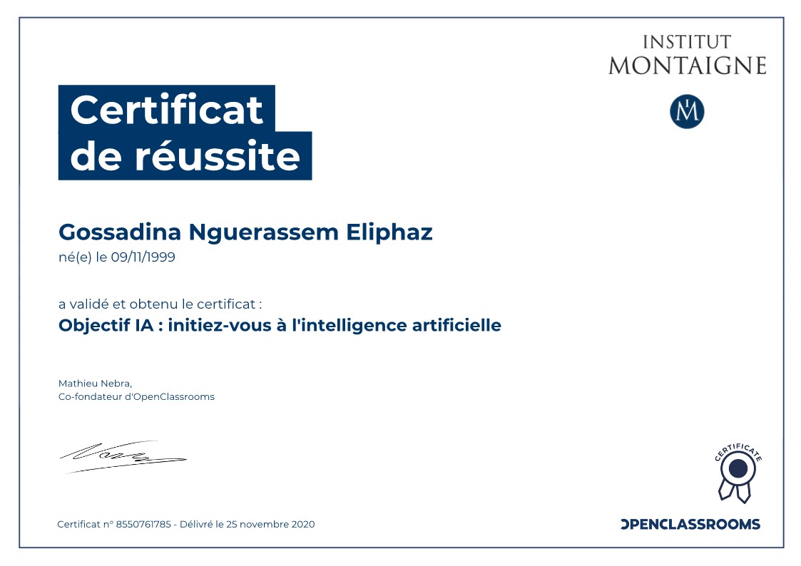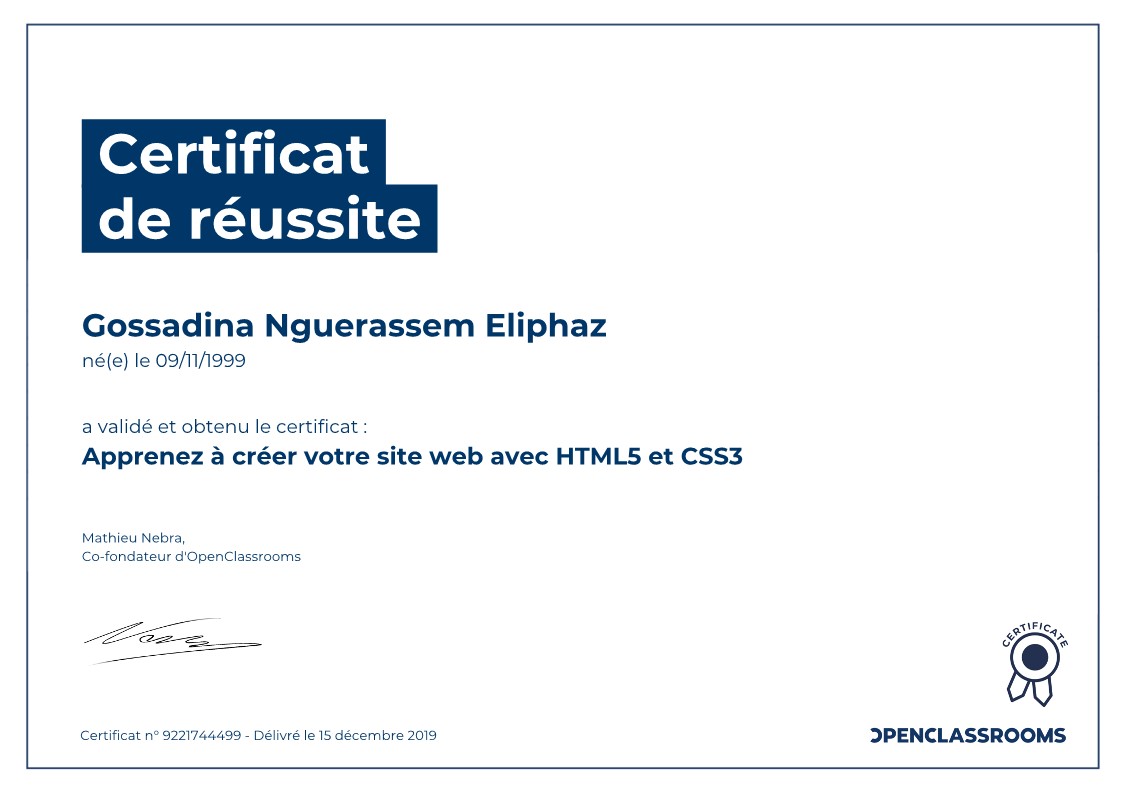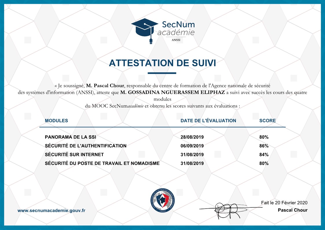 Je suis GOSSADINA NGUERASSEM Eliphaz, de nationalité tchadienne. Ingéneur en Informatique, obtenu à l'Université Catholique d'Afrique Centrale (UCAC) sous franchise de l'Institut Catholique d'Arts et de Metiers (ICAM) France. Je suis très passionné des nouvelles technologies avec plusieurs compétences acquises dans ce domaine.
