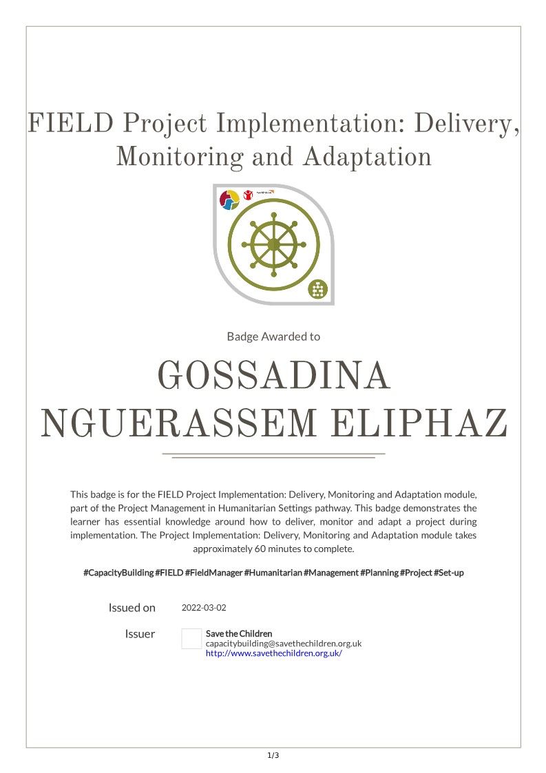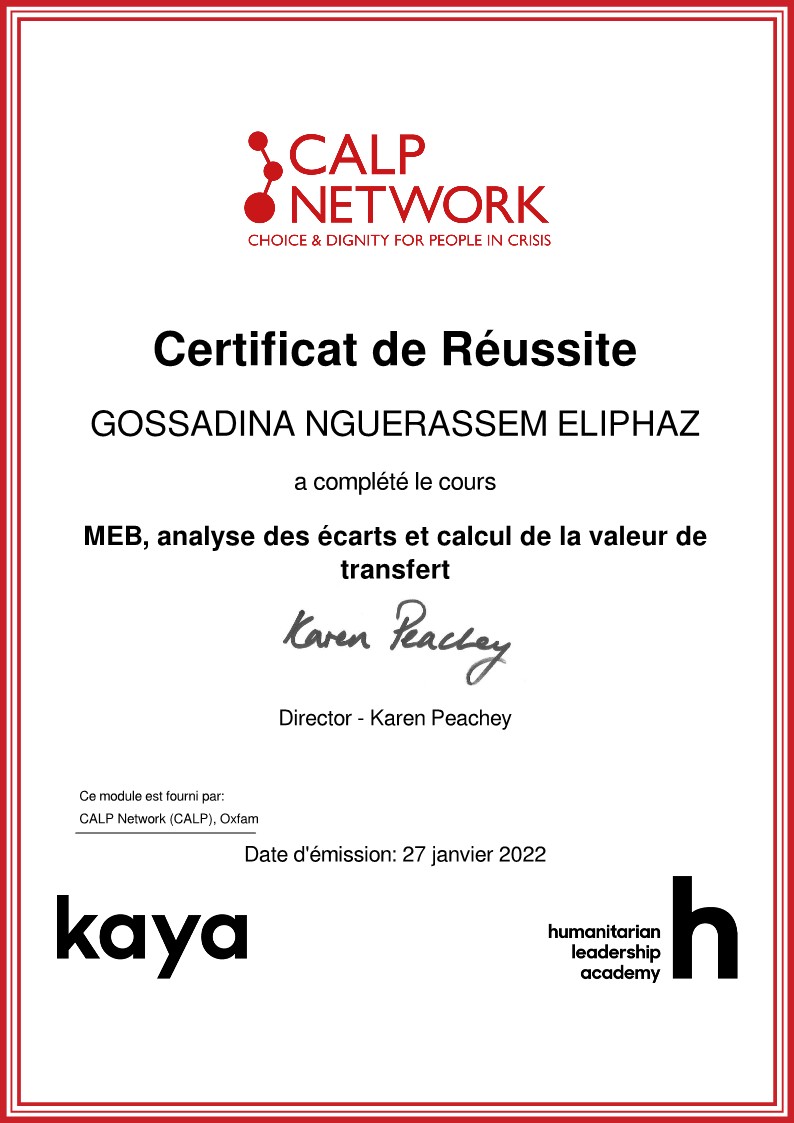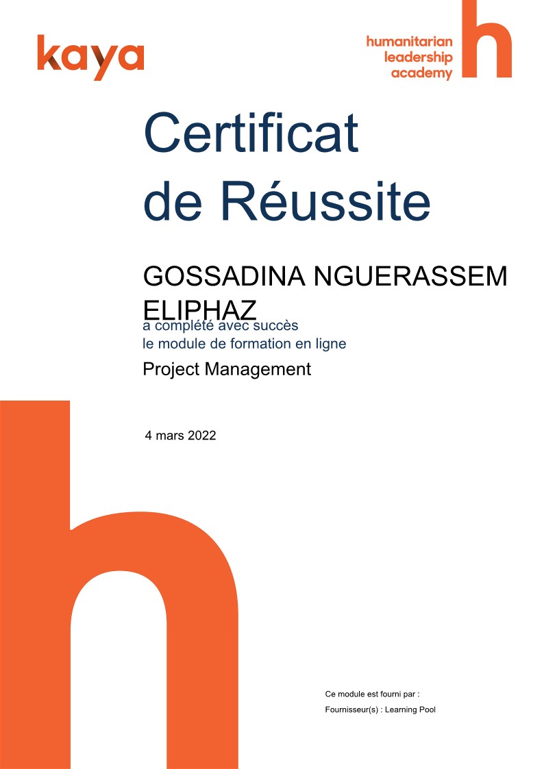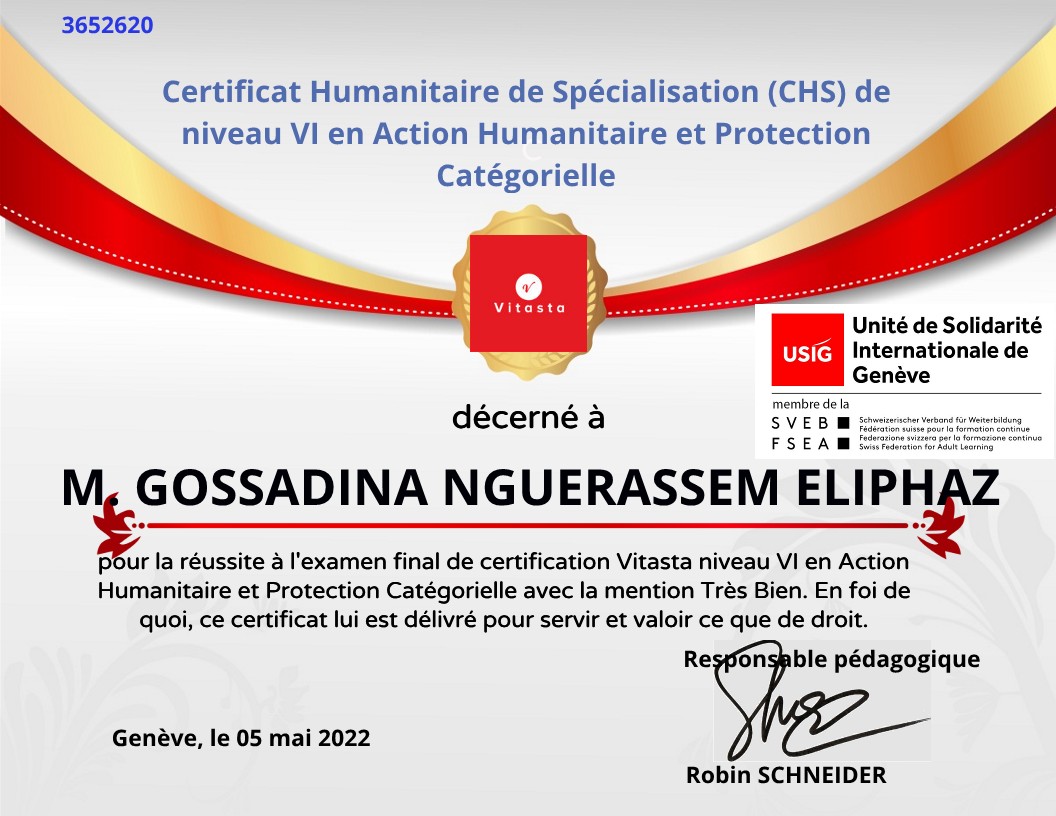 Je suis également animé par l'esprit d'aide humanitaire, ce qui m'a conduit à acquérir une solide base dans ce secteur grâce à l'obtention de plusieurs certifications de formations humanitaires.